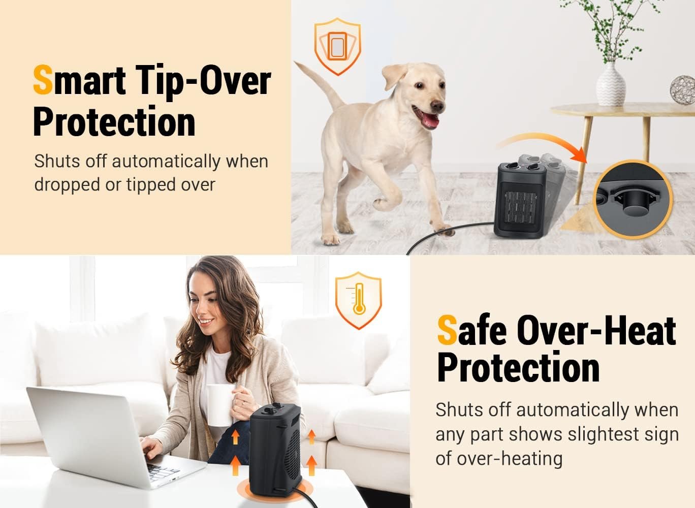 - GET NICE & TOASTY FASTER: The advanced PTC ceraming heating technology combined with the ultra-efficient fan will heat up any space faster and distribute the heat more evenly. Just turn on your space heater, count to 3, and enjoy your warm living room, bedroom or office.
